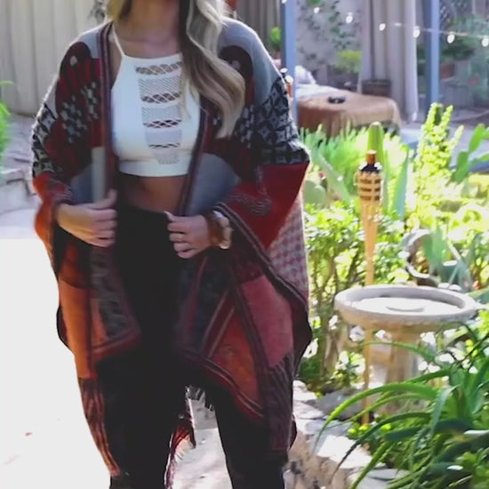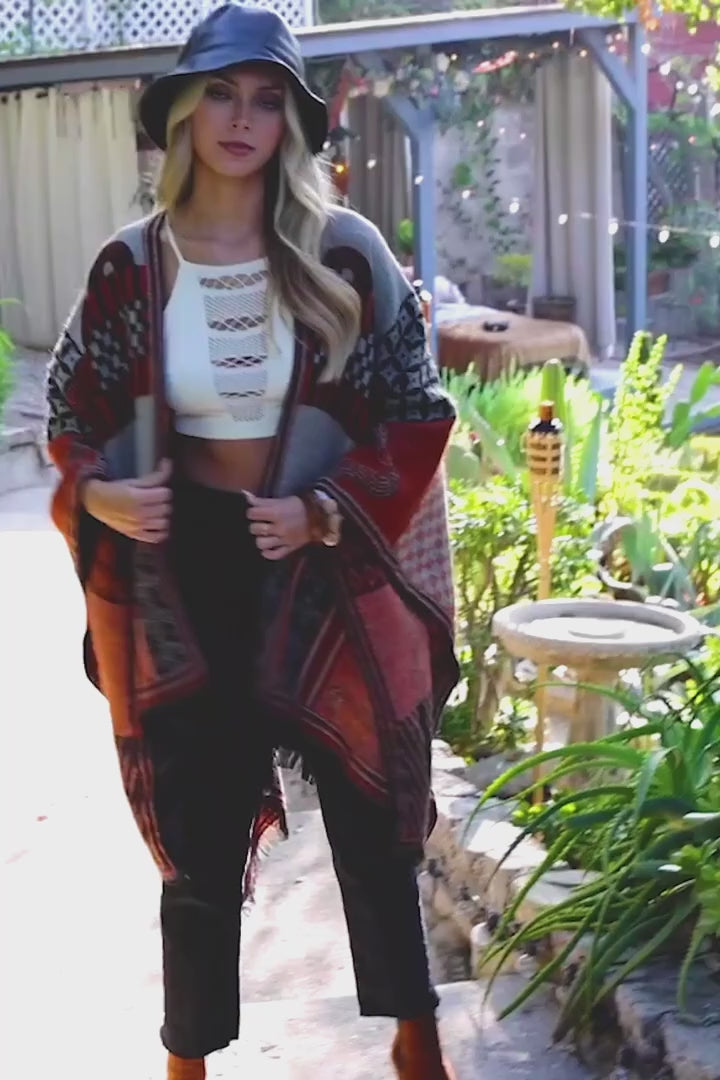 This Baroque style frayed edge Ruana is a funky and nicely warm way to enjoy the cold weather. The stylish pattern design provides friendly warmth without sacrificing your sense of fashion. They're just chic enough to not be boring, but cool enough for any party in the winter!