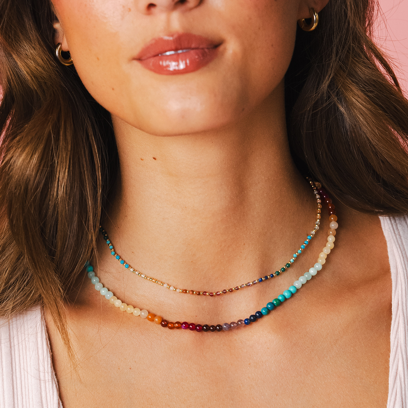 The Divine Healer Gift Set channels sacred energy to inspire inner peace, healing, and growth. This complete jewelry set features eight powerful energy stones—Amazonite (Inner Peace), Quartz (Healing), Carnelian (Energy), Garnet (Bravery), Amethyst (Vitality), Lapis Lazuli (Wisdom), Agate (Balance), and Turquoise (Protection)—carefully strung into two delicate necklaces and a matching bracelet.