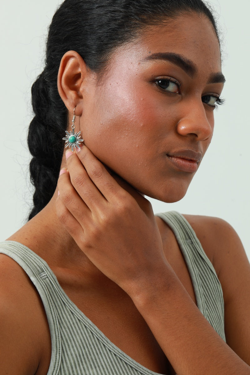 Wear the sunshine! These mini sun earrings feature a delicate turquoise inlay at the center, capturing the warmth of the desert. Lightweight and radiant, perfect for adding a bohemian glow to your look. #SunEarrings #BohoStyle✨