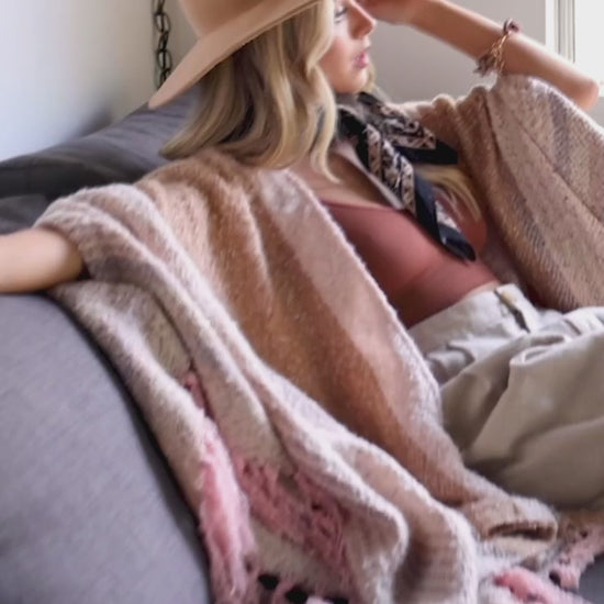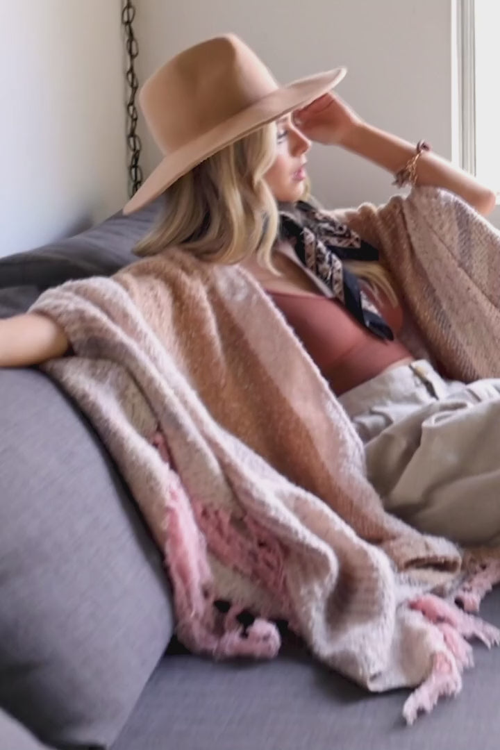You'll love the way this Stripe Bohemian Ruana Wrap feels from head to toe. It wraps you up in warmth and style while collecting tons of compliments along the way. Perfect for a night out by the fireplace or stacked with your favorite jeans and leggings for running errands around town.